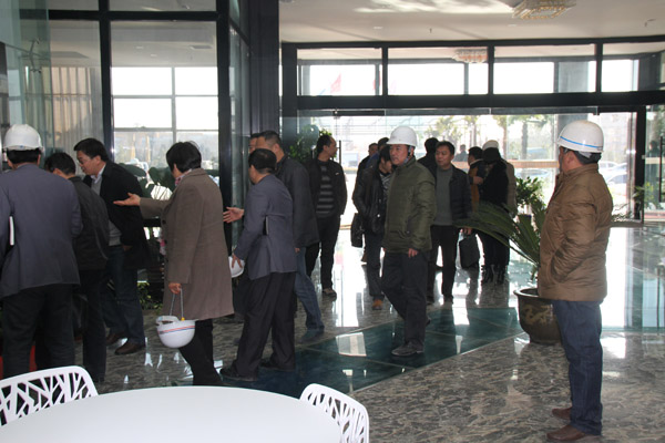 考察一行有市级·县级有关部门领导陪同考察.参观.指导!在施工现场,各级领导一一对各项工作进行了严格的检验,对安全,质量方面提出了严格要求,对现有的工作方法进行的更正指导。并对我厂坚持消防演练给与高度的表扬!!